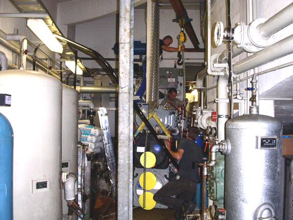 - Am dritten Arbeitstag wurde die Kälteanlage angeliefert.
