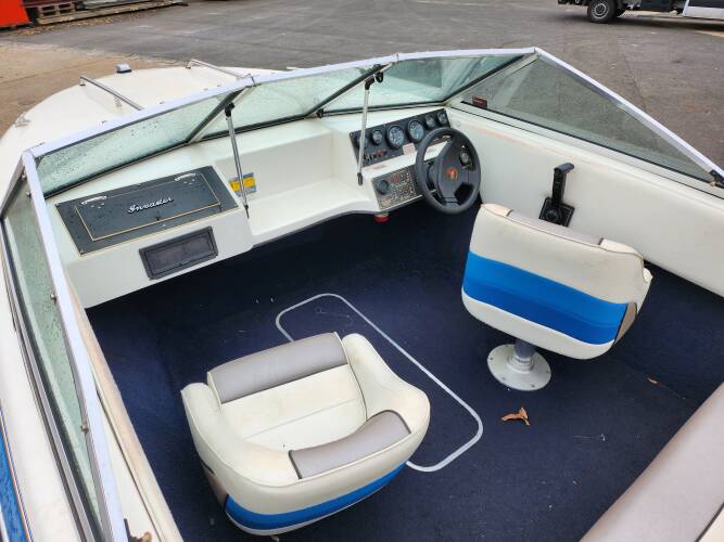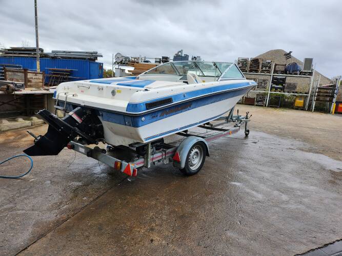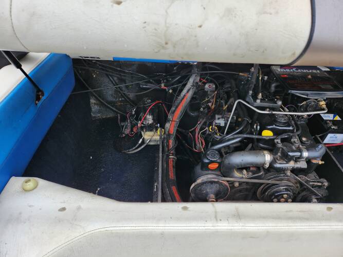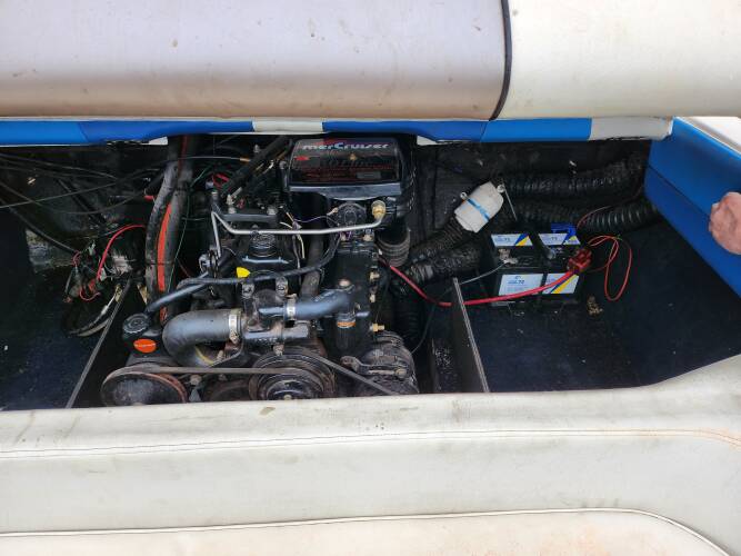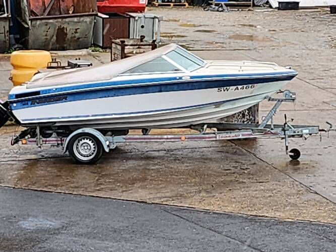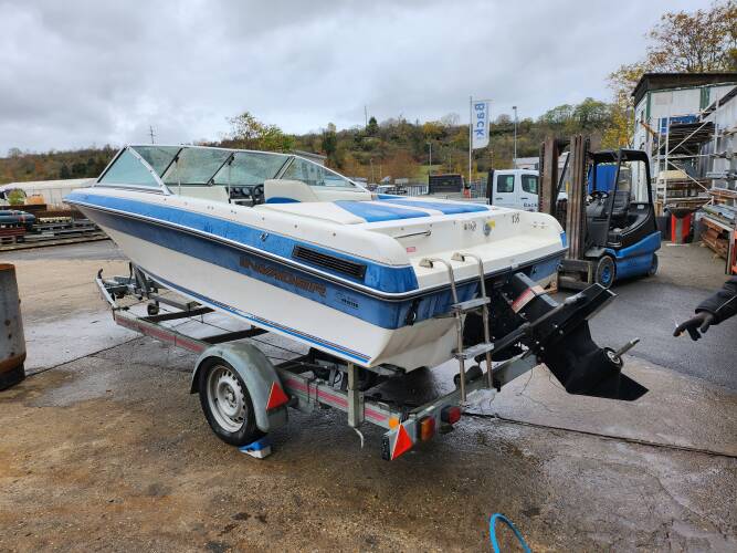| Beschreibung : | Gesamtlänge 500 cm. Gesamtbreite 218 cm. Motorhersteller: Mercruiser Benzinmotor. 3,0 Liter Maschine. Krümmer neu, Schwert neu. Am Boot ist keine Schraube |