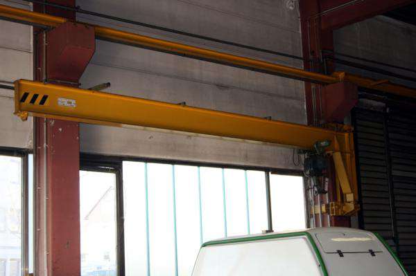 Hallenkräne wurden abgeschraubt und mit einem Stapler herunter gehoben.
