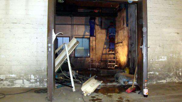Rohrleitungen, Lüftungsanlage und Regalsystem wurden mit Tigersägen zerkleinert.
