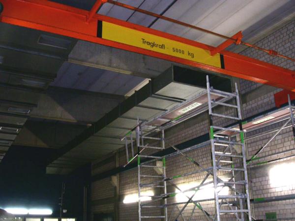 Hier wurden ca. 95 m Lüftungsschächte in ca. 6,50 m Höhe demontiert.