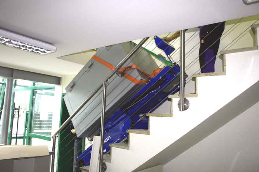 Gemäß dem Motto "Transport über Treppen für den Profi" können wir Lasten bis zu 600 kg über Treppen bewegen.