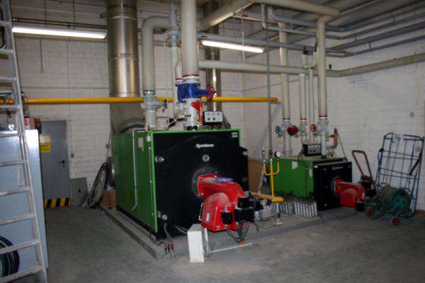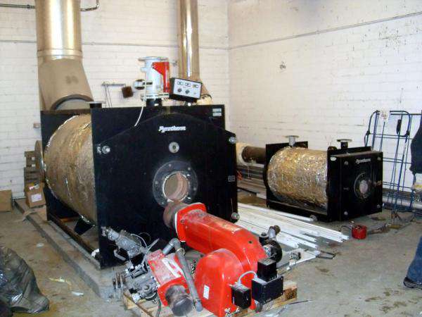 Die zwei Heizkessel wurden mit einem Fahrwerk ins Freie transportiert.